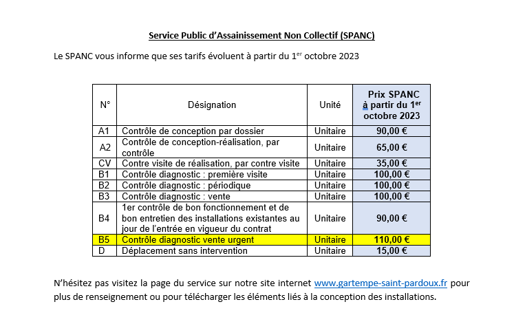 N'hésitez pas à consulter les tarifs SPANC disponibles dans la rubrique "Documents utiles".